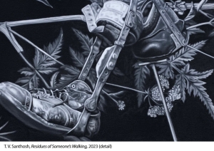T. V. Santhosh born in Kerala, India, 1968, obtained his graduate degree in painting from Kalabhavan, Santiniketan and his master’s degree in Sculpture from the Maharaja Sayajirao University of Baroda. His art cites histories of violence, injustices, war, terrorism and media propaganda. His art practice has stood as a strong commentary on the current social and political crisis of our lives.