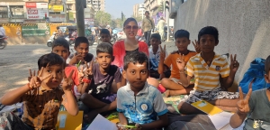 Actress Kavya Keeran helps out street kids while distributing books and Pens