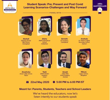 Students across the world are faced with an unprecedented challenge and are now expected to cope with this scenario in real-time. With a change in the way they learn, interact, experience their childhood they are taxed with immense stress and pressure to cope with these changing times. Keeping this in mind Aditya Birla Education Academy (ABEA), part of Aditya Birla Education Trust conducted one-of-its-kind initiative by hosting a masterclass – ‘Students Speak: Pre, Present and Post Covid-19 Learning Scenarios – Challenges and Way Forward. The online panel discussion was moderated by Educationist, Lt. Col A Sekhar.