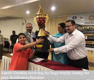 11 year old Aansh Nandan Nerurkar , sixth standard student of Orchids International School, Borivali Branch , Mumbai , Maharashtra, has won the 36th National Under-11 Open Chess Championship which concluded at Visakhapatnam recently. Nandan scored 10 points and remained unbeaten throughout the tournament. He received cash prize of Rs 70,000 and a glittering Trophy.