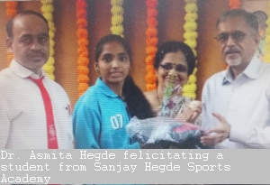 According to Dr. Asmita Hegde, In just one year, many students of Sanjay Hegde Sports Academy have performed brilliantly at district and state-level competitions. The special mention goes to Miss Rohini Modak, who graduated from the Academy, and has been selected to compete at International level competitions.