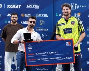 Simca Advertising Ltd proudly celebrated a moment of sporting brilliance at the prestigious Abu Dhabi T10 League, as the company had the honour of sponsoring and presenting the Player of the Match award to standout performer Tim David.