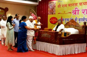 On the third day of “Ram Katha” recitation, on Monday, 19 August, Shri Murlidharji Maharaj in his exposition dwelt upon “charity and work” and said that there is no greater religion than “Charity”. “It gives us mental peace and happiness and helps us to ward off sins. Despite desire, the people do not recite “Bhajans” since the work becomes impediment in prayer. If anyone is told a day earlier, that he had to go to listen to “Ram Katha, next day he declines the offer saying he has to attend to work. But all his jobs are automatically completed, if anyone surrenders himself to Lord Ram”.